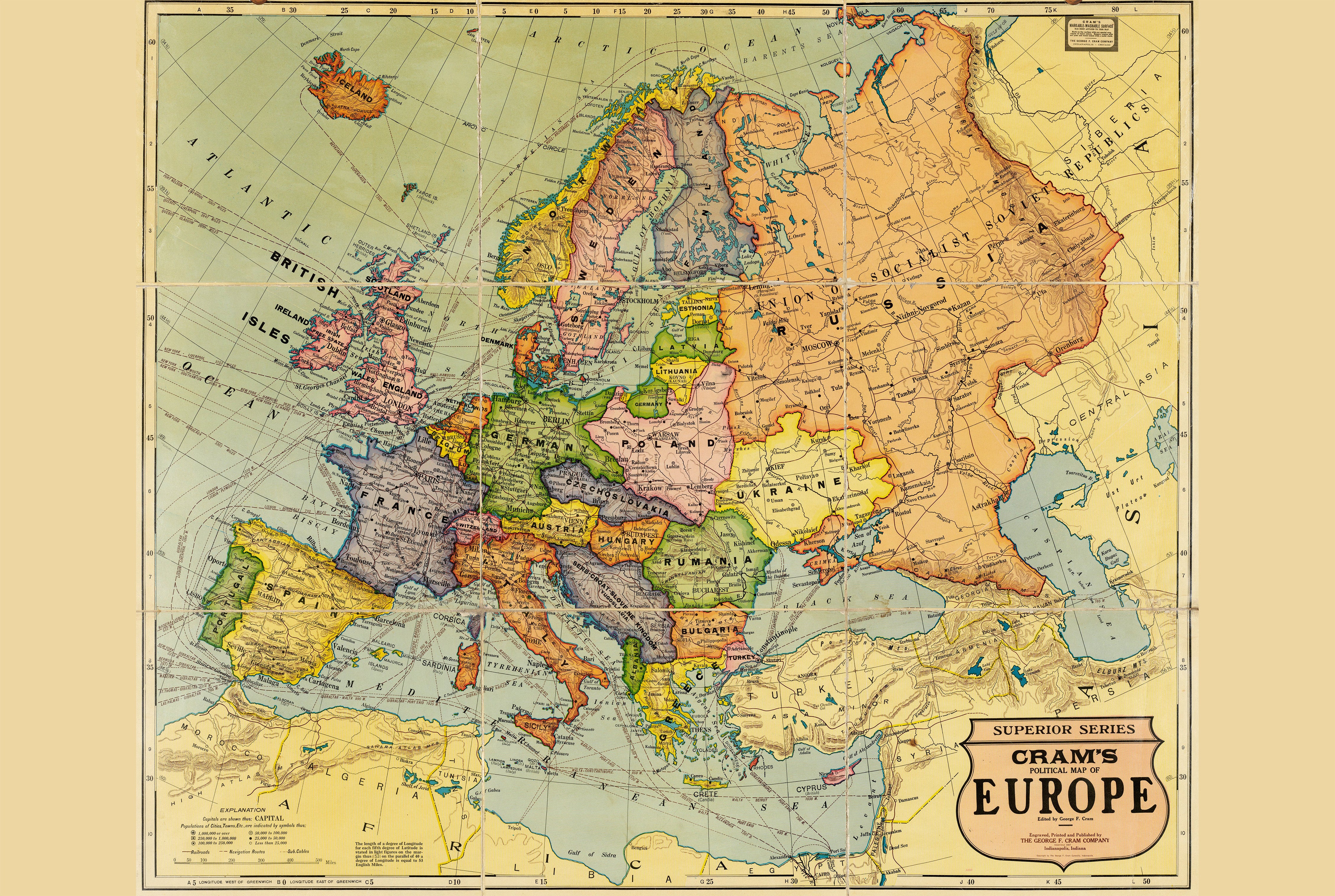 1925 Europe - Historical Wall Map of the Interwar Period